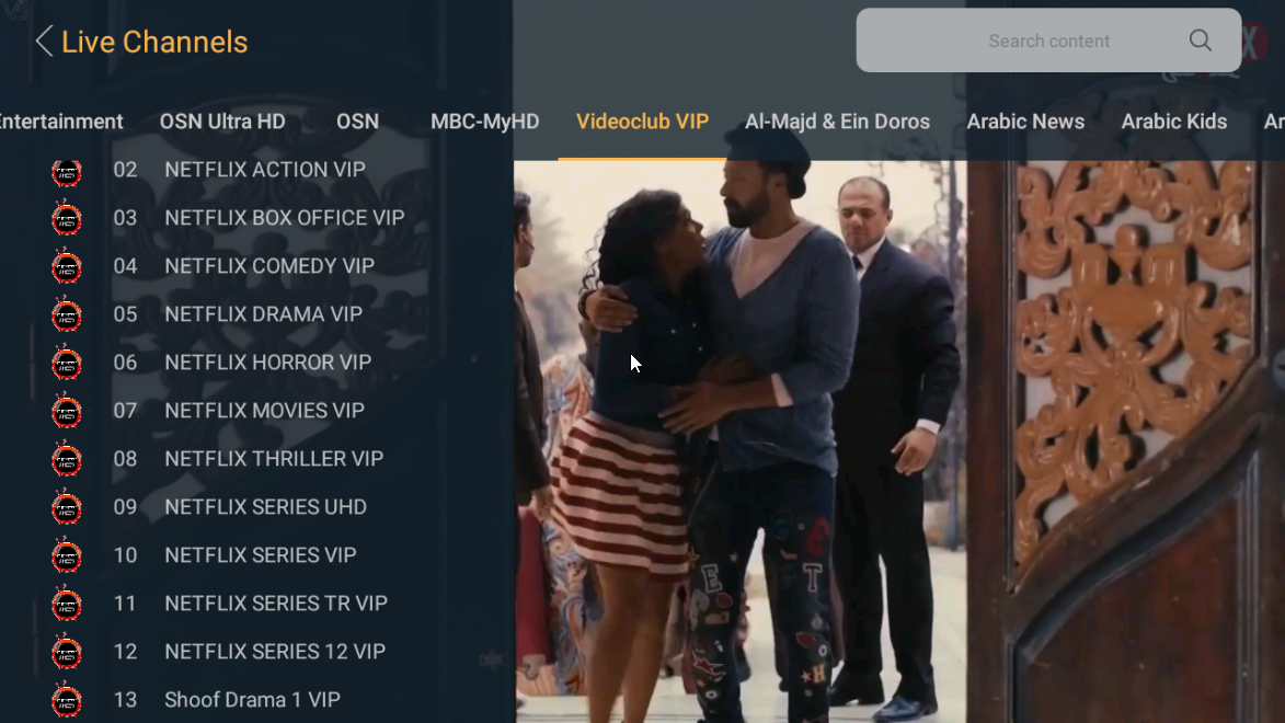 - قنوات نت فيلكس وقنوات افلام 24 ساعة.